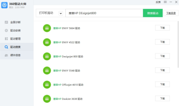 3、比如说输入惠普HP DEsignjet800,点击搜索驱动后,再点击旁边的【下载】;