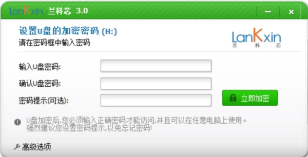 兰科芯U盘加密工具是兰科芯官方为其自己品牌的U盘推出的加密工具,U盘易于丢失或被盗,如果没有密码保护,他人可以轻松访问您的数据。密码保护可以防止这种情况的发生。U盘经过加密后,使用者必须输入正确的密码才能访问,并且可以在任意电脑上使用,如果你购买了兰科芯U盘需要存储重要资料的话,那么这个U盘加密软件是必备的。