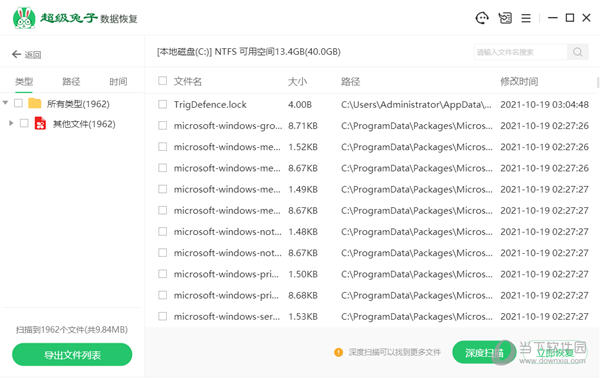 2、正在扫描中(扫描到文件后,即购买会员进行恢复)扫描需要时间,请耐心等待(扫描速度主要根据当前所扫描的磁盘大小和数据多少决定,如果磁盘中存在坏道用时会偏长一点)具体的剩余时间回现在超级兔子数据恢复软件上。