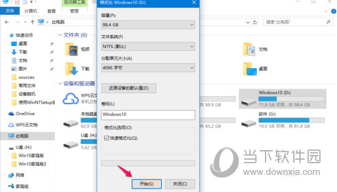 11、在弹出的 格式化Windows10(D:)对话框中点击:开始;