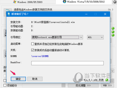 8、此时会打开一个都准备好了吗?的对话框,我们点击:安装成功后自动重新启动计算机 – 确定;