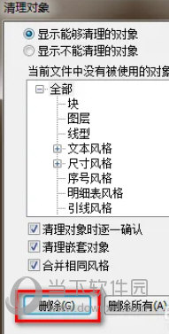 弹出清理对象,单击【删除】,下面勾选“清理对象时逐一确认”。