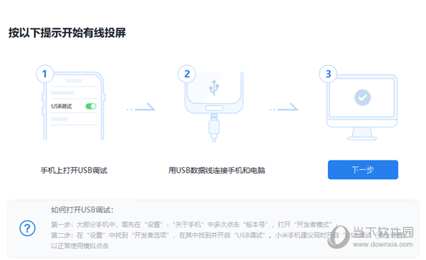 安卓手机可数据线连接方式将手机画面投屏到电脑,投屏后还可以通过电脑操控手机。
