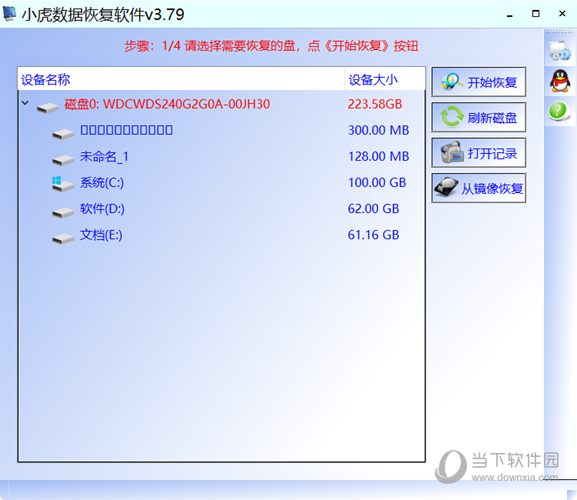 1. 打开软件后,选择需要恢复的盘,点《开始恢复》