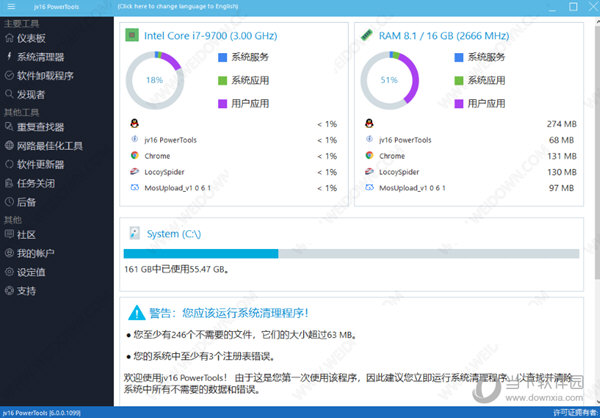 jv16 PowerTools是一款非常专业的电脑系统优化软件。它的功能十分强大,提供了优化、修复和保护等一系列功能,支持重复文件搜索、网速优化、系统资源释放、软件更新等功能,该版本内置注册机,用户可永久免费使用。