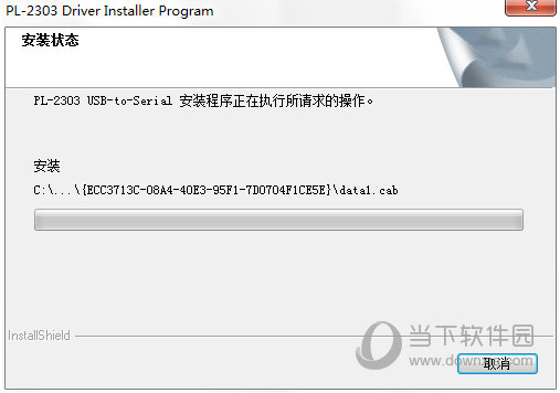 2、开始安装后无需任何设置会进入到pl2303 win7驱动的安装进度条界面,在这个界面我们等其自行安装完毕即可。