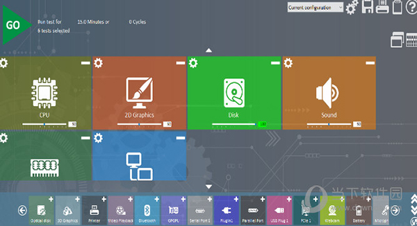 BurnInTest测试CPU, 硬盘,SSD,RAM, 光驱(CD,DVD和蓝光),声卡, 图形卡(GPGPU,视频RAM,2D图形,3D图形和视频播放),网络端口和打印机。