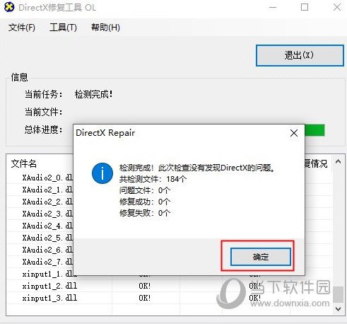 1、下载解压,直接运行DirectX Repair.exe,单击【检测并修复】按钮开始检查电脑的当前状态及是否有异常问题存在。