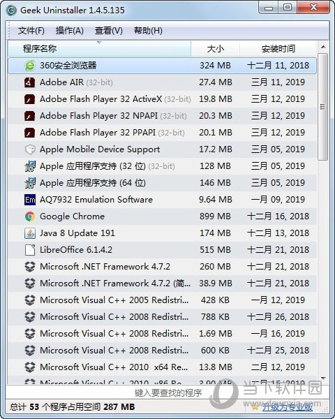 2.界面简单,使用方便。这个软件只有一个主界面。windows中所有已安装的软件会全部显示在这里,而所有和卸载有关的功能都集中在右键菜单中。