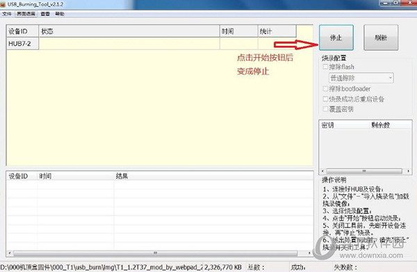 12、烧录成功,烧录成功进度条变为绿色,此时点击停止按钮,然后盒子去掉一切连接线,重新接上电视机即可成功;