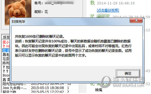 第四步:稍等片刻后,软件将弹出提示窗口,提示成功恢复的微信聊天记录条数,如下图所示,成功恢复了1699条已删除的微信聊天记录。