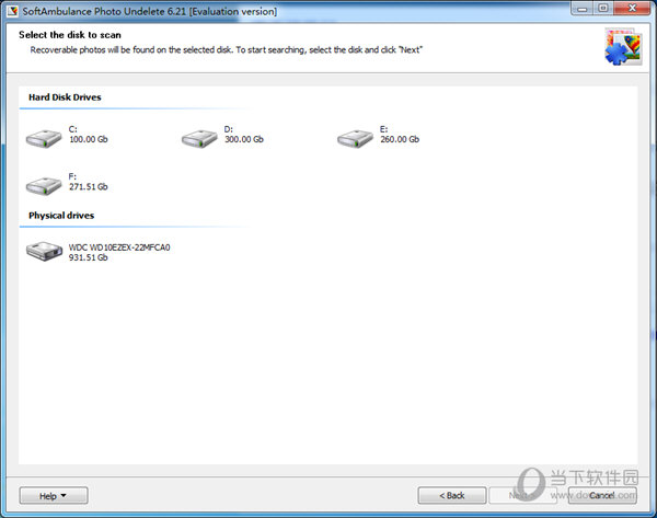 启动软件后进入驱动器选择屏幕,用户可根据显示出来的硬盘驱动器,也可扫描移动设备的数据,查看硬盘相应的驱动器属性,可以执行快速扫描或者彻底扫描。扫描结束后,结果会显示被删图片的缩略图,找到需要恢复的文件后,可以选择它们,分析属性。