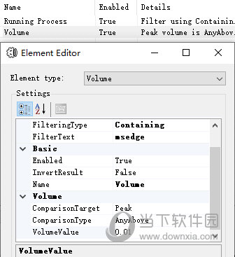 切换到Actions设置需要执行的操作,比如启动某个程序、让指定程序静音或进行音量调节等。本文示例进行的操作很简单,就是让进程名为msedge的程序静音。