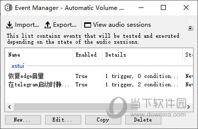 按同样的方式,还可以添加一个让msedge在telegram程序退出时恢复音量的事件。