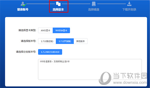 3.【选择版本】中按个人显卡型号,选择AMD卡或NVIDIA卡;