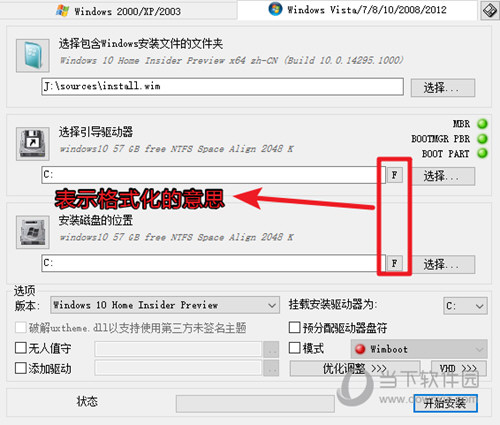 5、挂载安装驱动器(针对NT6以上系统)指的是安装系统后系统盘的盘符,现在新版默认就是C盘。举例你选择D盘后,装完的系统盘符就会显示D盘