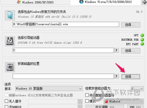 5、需要注意问题四:当GPT、BOOTMGB PBR和EFI PART后的指示灯都必须为绿色时,我们再点击:安装磁盘位置项的【选择】;