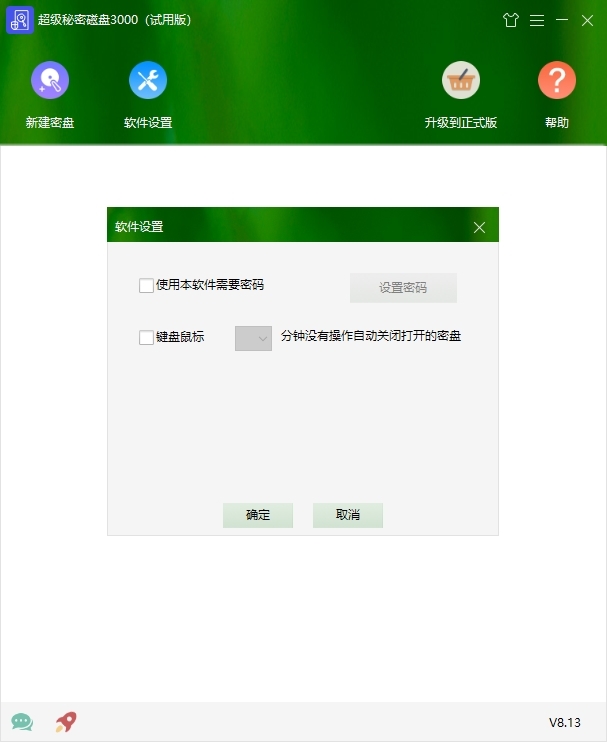 打开软件软件,点击软件窗口上方的新建密盘按钮,然后在弹出的新建密盘窗口中,设置密盘名称、密码和存放位置就可以了。