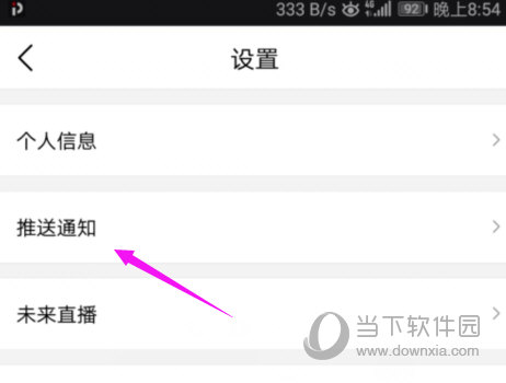 4、我们选择图箭头所指的【推送通知】这一项,如下图所示: