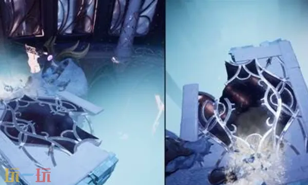 1、战斗开始前,沿路走到宫殿底部,一名玩家变成树人将雕像拽到冰面砸出缺口,另一名玩家变成鱼进入水下,将冰球扔到前方冰块打开大门触发BOSS战。