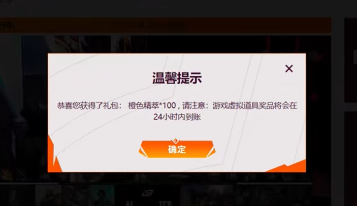 点击确认后,即可获得系统随机分配的奖励,包括精粹、图标、表情等。