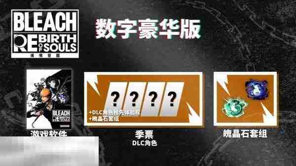 游戏本体季票季票特典:DLC角色抢先体验(7天)魄晶石套组1(攻势魄晶石【浅伤】、防势魄晶石【忍耐】)豪华版专属:魄晶石套组2(灵压魄晶石【简略】、特殊魄晶石【追风】)