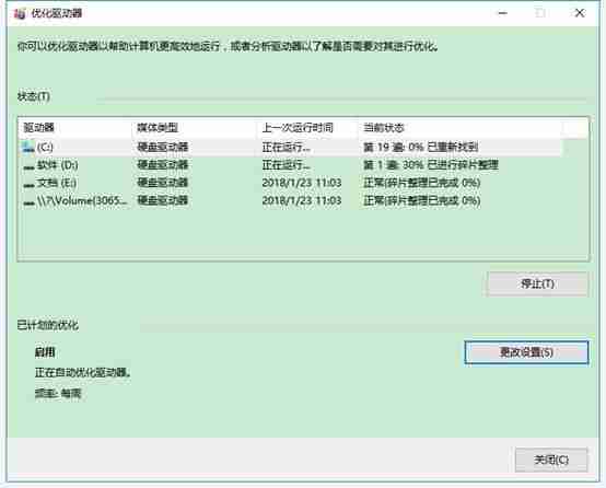 步骤六:建议启用“优化计划”,系统将定期自动执行磁盘碎片整理,保持磁盘最佳状态。