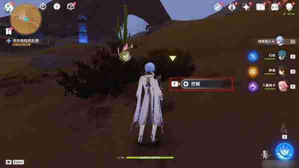 在传送锚点东侧草丛中挖掘(倒三角光标)获得任务道具。