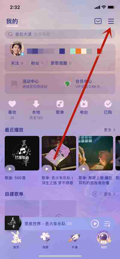 首先,打开QQ音乐应用,点击“我的”页面,然后点击右上角的“更多”菜单(通常显示为三个垂直点或三条水平线)。