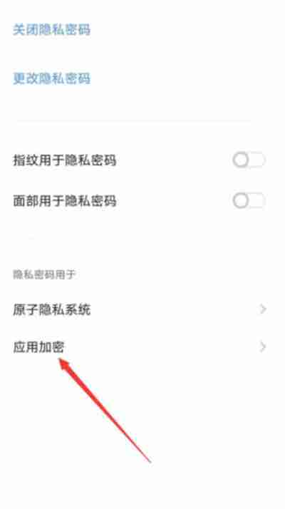 在“隐私与应用加密”页面中,您会看到“应用加密”选项,点击进入。