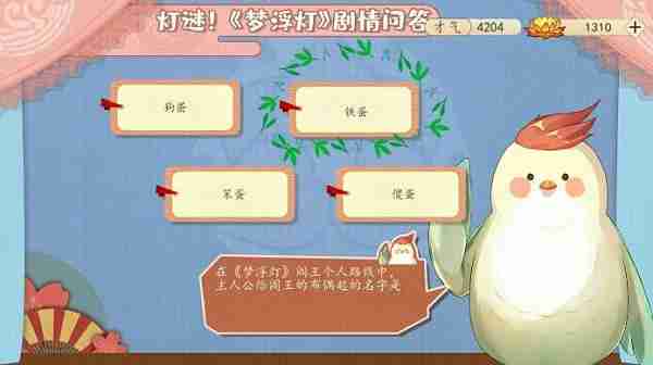 《梦浮灯》清明灯会问答:阎王布偶的名字是什么?