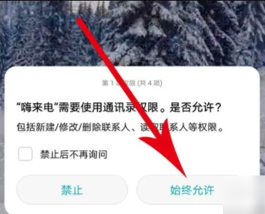 接下来,系统会依次弹出通讯录、电话和位置权限申请,请点击“始终允许”授权。